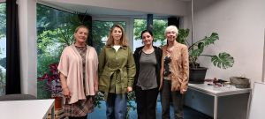 Die enge Zusammenarbeit der Projektpartnerinnen macht das Angebot besonders: Die Bildung+Lernen gGmbH bringt ihre Expertise in der beruflichen Bildung ein, die Gleichstellungsbeauftragte der Stadt Schwerte sorgt für die gendersensible Ausrichtung, und der Arbeitskreis Asyl begleitet insbesondere Frauen mit Flucht- und Migrationshintergrund. Unser Foto zeigt Anja Bulion, Lehrkraft der Bildung+Lernen gGmbH (rechts) und Birgit Lohmann, Arbeitskreis Asyl, mit zwei Teilnehmerinnen.